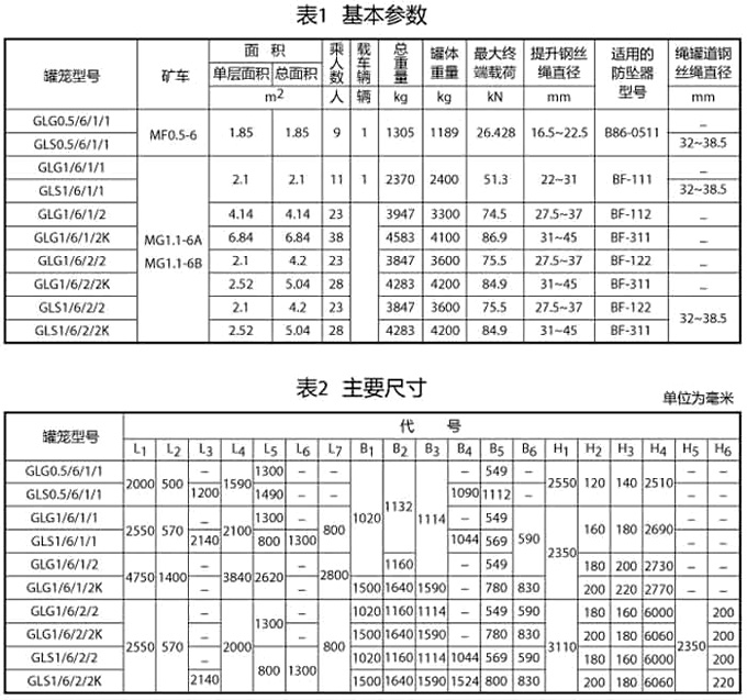 立井單繩罐籠由楔形連接裝置,抓捕器、罐體、罐內阻車器、導向裝置組成,如用于上下人,則必須設置斷繩保險器(防墜器),抓捕器根據制動繩布置形式可分為I型(對稱)抓捕和II型(對角)抓捕形式。常用單繩罐籠及配套防墜器的具體型號參數見附表。