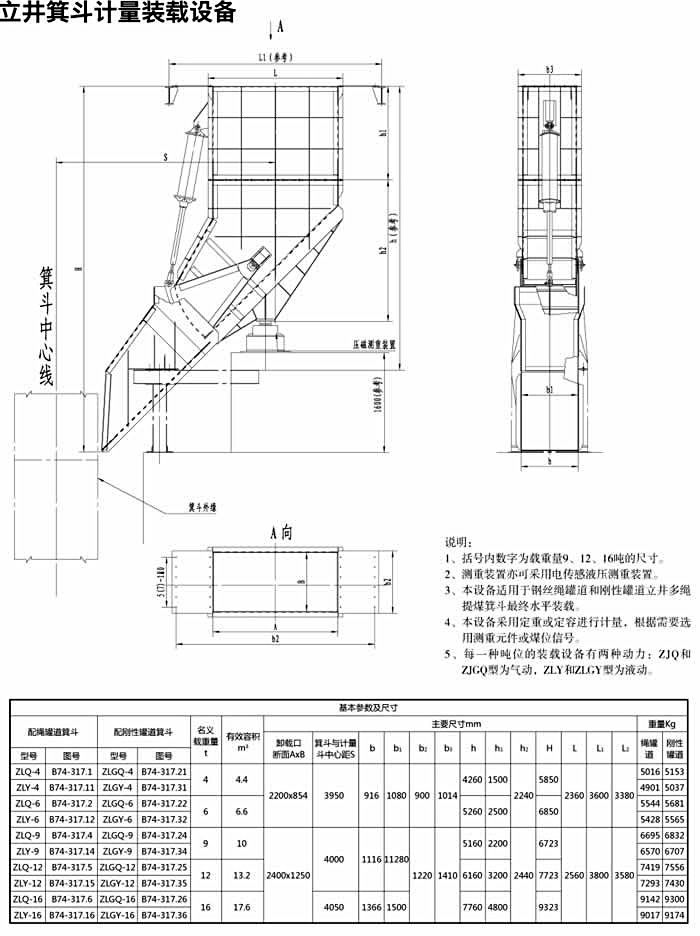 立井箕斗計量裝載設備及技術參數