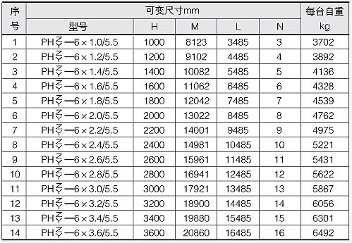 1、本設備適用于600軌距1t和1.5t標準礦車向上爬高之用,根據爬高不同共有14種型號,每種又以傳動裝置的布置方式不同分為左側式和右側式,本圖所示為爬高l.4m的右側式布置,如需裝成左側式則減速器選用ZQ50-31.5lZ,傳動機架相應選用左側式。