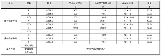 此外,還有密閉、起重、防雷三種井架附屬裝置,供各位單位選用。